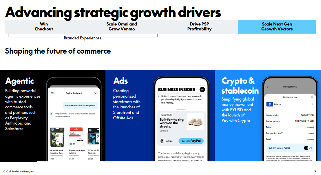 AI & Agentic Commerce: Positioned PayPal as a “smart router” for AI-driven transactions, ensuring relevance in the era of AI shopping agents.